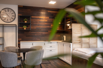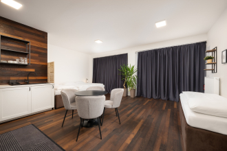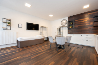 Family apartment of 38 m², suitable for 4 people. It offers comfortable accommodation with a double bed and two single beds. There is a bathroom with a shower, a kitchenette with basic equipment, a wardrobe, a coffee table, a chair, a TV and free Wi-Fi. This apartment is ideal for families looking for comfortable and practical accommodation.